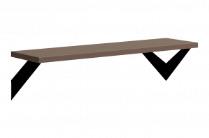 Полка крепится к стене с помощью чёрных треугольных держателей, которые обеспечивают устойчивость и долговечность. Особенность модели в том, что держатели можно расположить сверху, снизу или один сверху, другой снизу, что позволяет адаптировать полку под любые интерьерные решения и потребности.