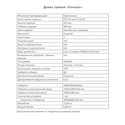 Диван Пиксель (Аквилон) продается в интернет-магазине mebel-online-tolyatti.ru по цене 30 299 руб. Есть доставка по Тольятти и Самарской области. Возможность подъема на этаж и сборки уточняйте у менеджера по телефону 8(800)505-27-11.