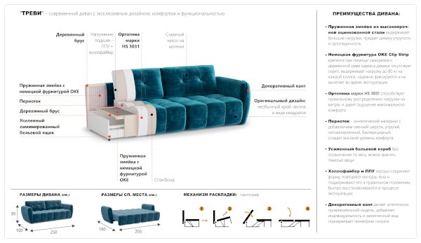 Диван Треви-2 (Империал) продается в интернет-магазине mebel-online-tolyatti.ru по цене 92 146 руб. Есть доставка по Тольятти и Самарской области. Возможность подъема на этаж и сборки уточняйте у менеджера по телефону 8(800)505-27-11.